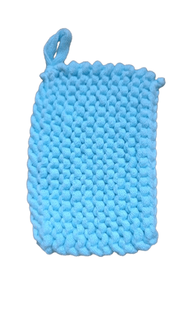 Cette éponge Tawashi est lavable, réalisée au crochet par nos bénévoles .
